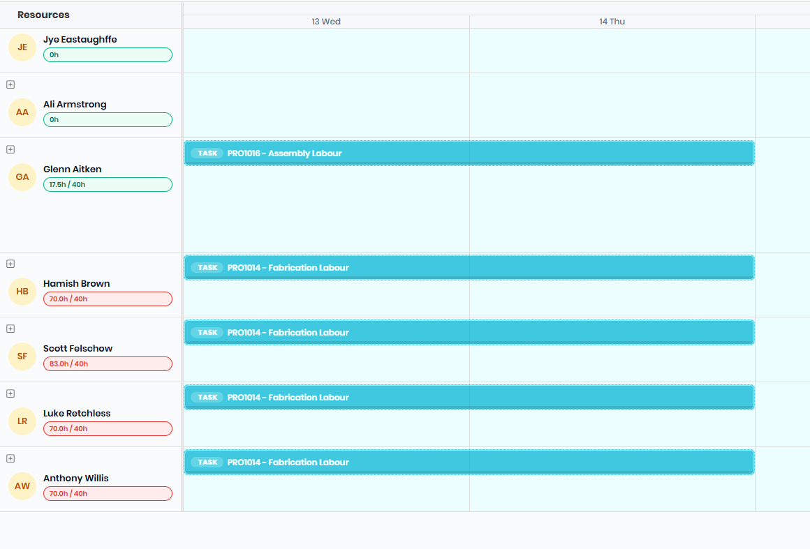 Is there a way to show the hours per staff members in the Gantt Chart and Staff Schedule and be able to move around the individual staff freely?