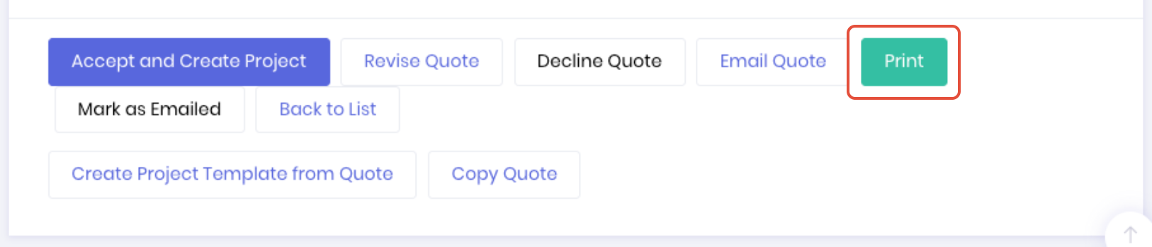 Open the quotes detail page by clicking on the quote number from the quotes dashboard. From the option at the bottom of the quote details page, click the Print button.