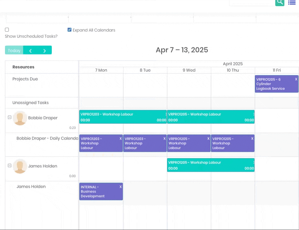 - Expand All Calendars - Expand all staff calendars to display their calendar task assignments and schedule.