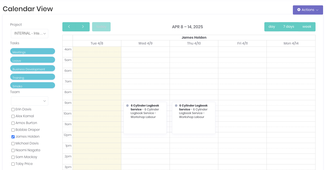 - Projects Due - Displays the due date of projects in your selected period. Note: This cannot be edited from this schedule.