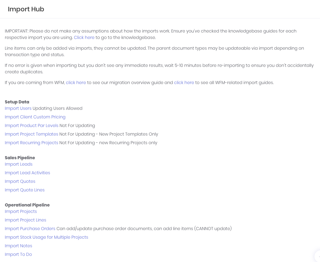 Product Par levels and locations can be imported and updated in bulk via the attached template. Note: this import will only work for FIFO products. Product Par Levels and Locations are not part of the standard product import template. The products you are adding levels and locations to must have already been created/imported in WorkGuru. The import template can be uploaded on the Import Hub (Administration -> Imports)
