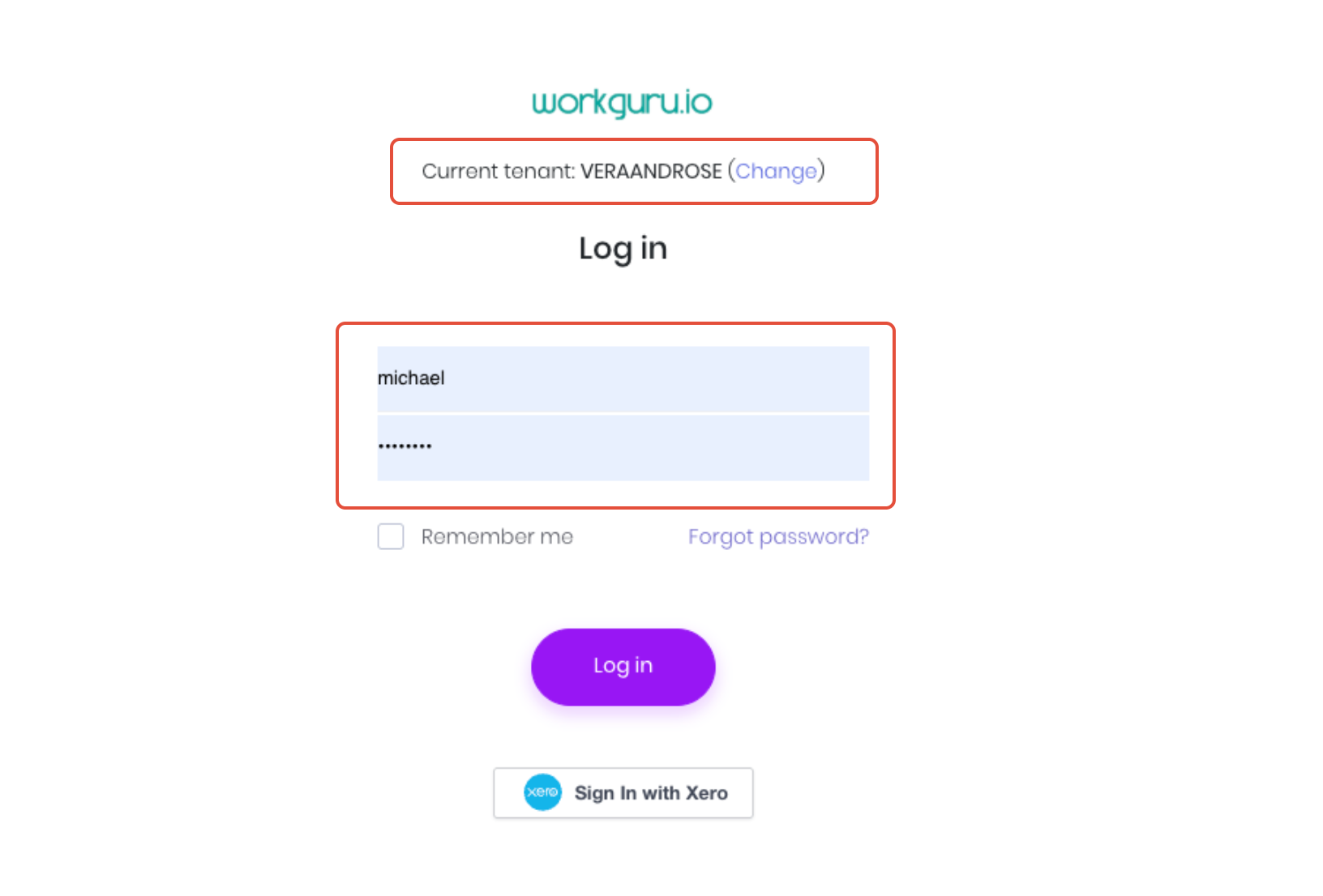 The activation link will automatically set the correct tenant on the WorkGuru login page and prompt the user to change their password.