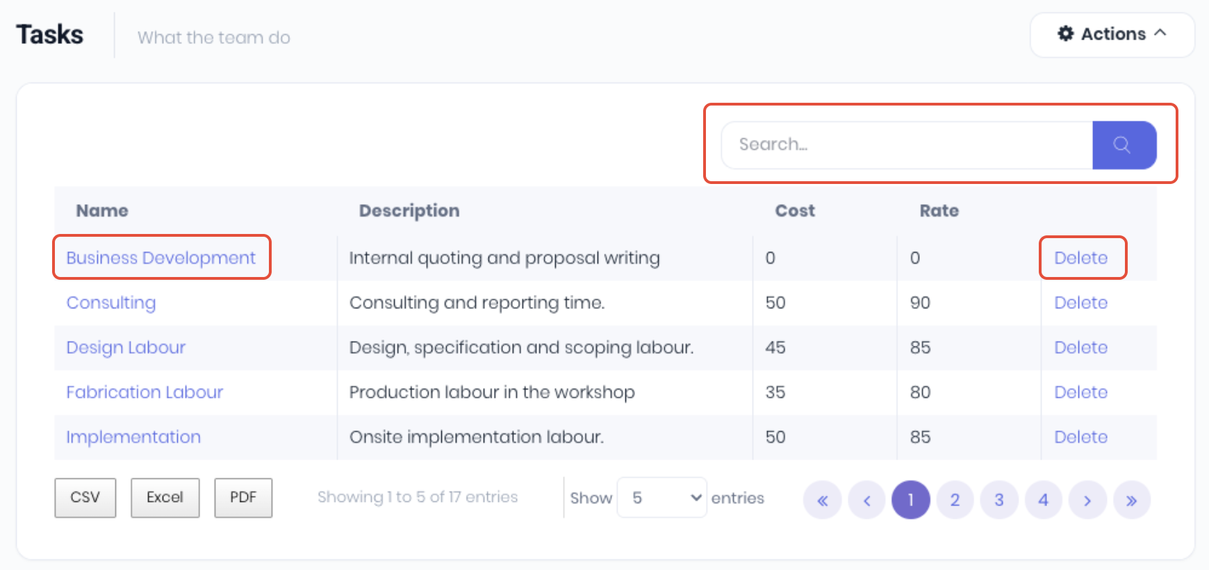 - Unit Cost - Forecast task cost. Only used for quoting.