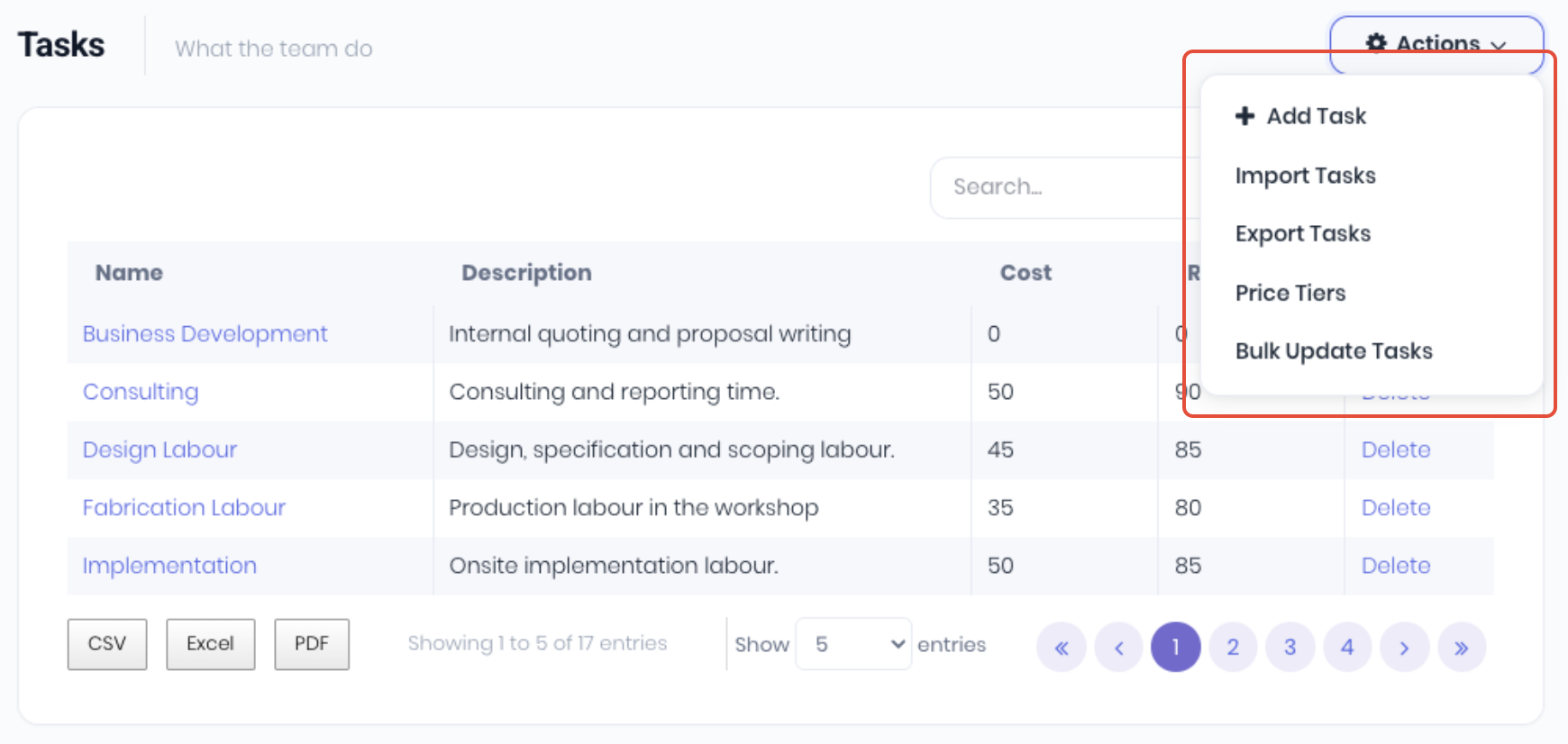 - Price Tiers - Add or manage pricing tiers to control alternate task rates.