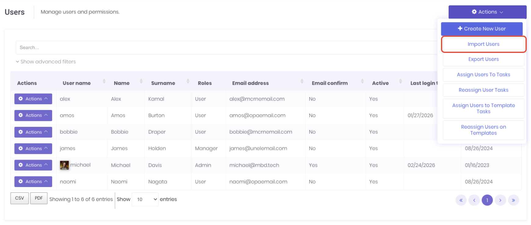 IMPORTANT: The user import relies on unique email addresses for each user. This is used to match existing users when using the import as a tool to update user details along with other mappings around the system. For this reason, every user in your WorkGuru account requires a unique email address.