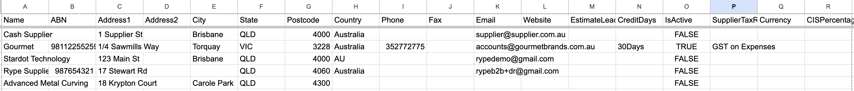 Open the downloaded WorkGuruSupplierExport.csv file in your spreadsheet editor of choice. Be aware of spreadsheet editors auto-formatting data fields (removing leading 0's, dates and barcodes conversion etc). If you want to be 100% sure no data is auto-formatted, it is highly recommended you import the .csv instead of opening it. As the supplier import will match on the supplier name, you can update every column in the export EXCEPT for the supplier name. If you do change a supplier name, it won't update the existing supplier and will import a duplicate supplier with the details supplied. Likewise, if you have new supplier names on the import, you will be creating new suppliers in WorkGuru.