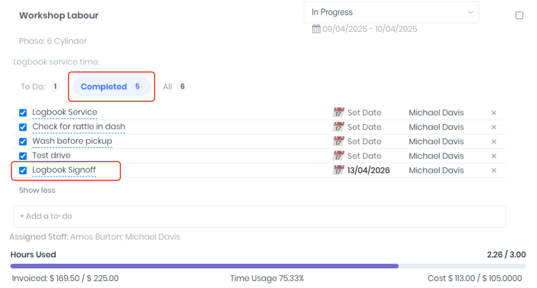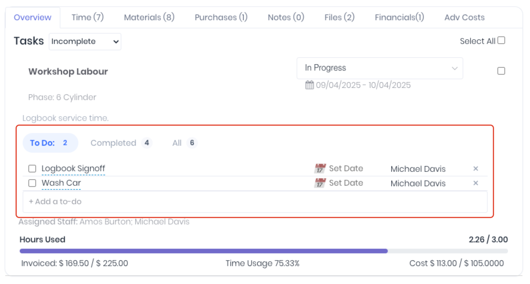 As staff are working on a task, as they complete specific to dos or milestones, they can mark them as complete as they are entering their timesheets. To dos can be scheduled to be completed by a specific time, and allocated to specific staff to complete.