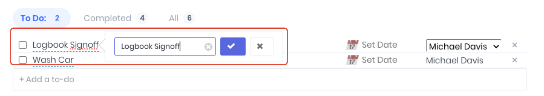 Edit the task to-do's by clicking on the to-do Name and entering the updates in the popup. Click the tick to apply changes.
