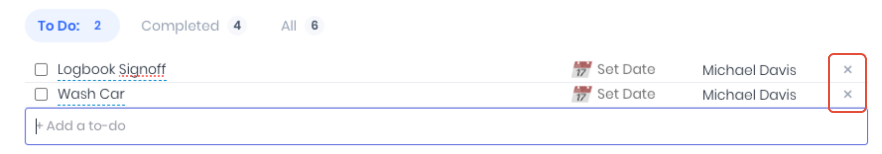 The selected to-do will then be moved to the Completed tab. Completed to-do's can be deselected to move them back to the active list.