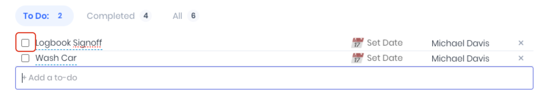 To complete a task to-do, simply click the checkbox next to the relevant to-do.