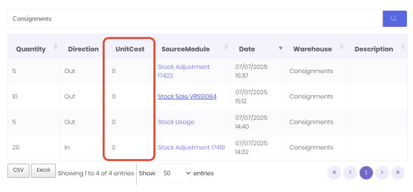 Consignment inventory is a business arrangement where a supplier (consignor) provides goods to a client (consignee) who then sells the goods, but the supplier retains ownership until the goods are sold. The client doesn't pay for the inventory until it's sold or used, and unsold/un-used items can be returned to the supplier. Due to this, it is important to ensure that ALL stock movements of consignment stock in any direction are costed at $0. You can confirm this via consignment product's stock movement history.
