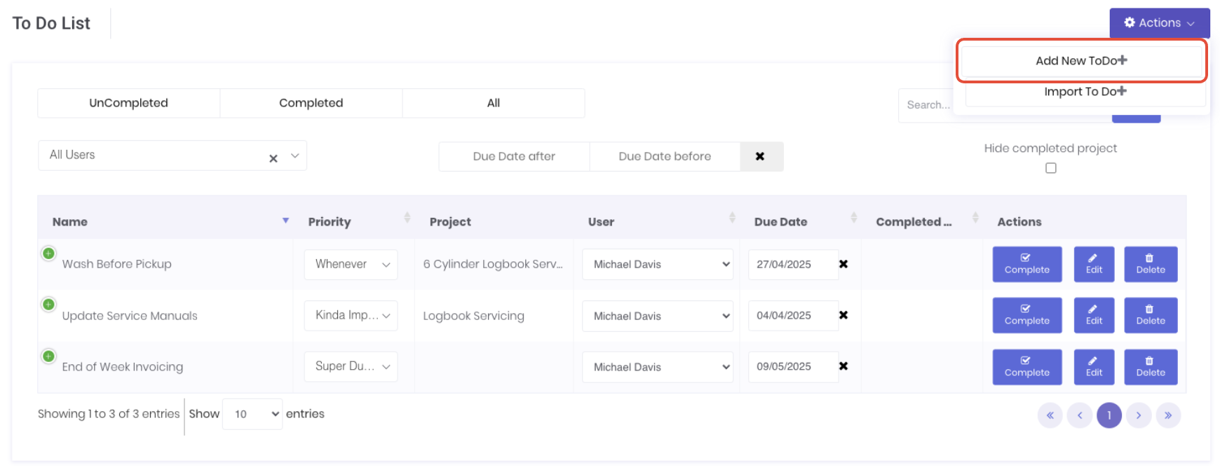- Due Date - To-do due date.
