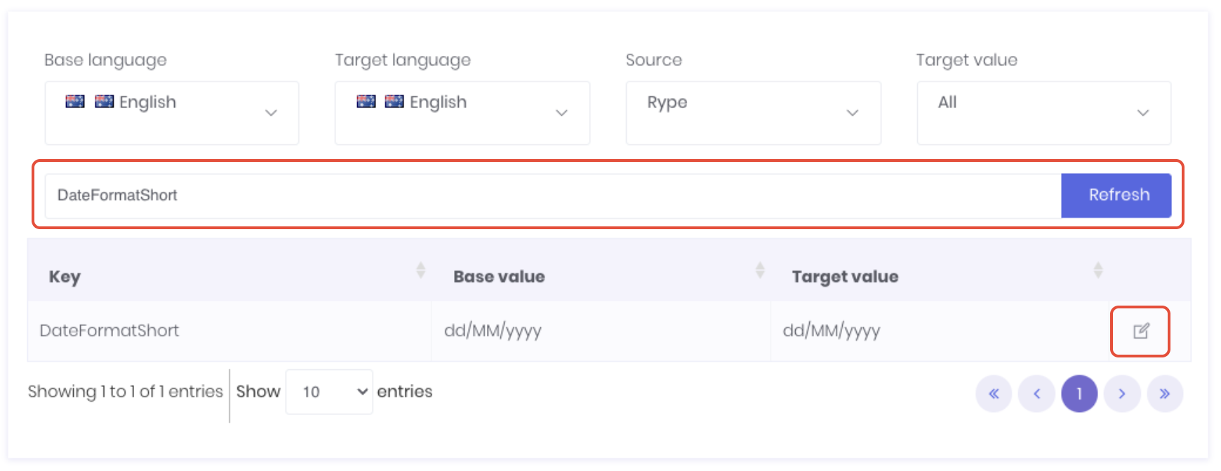 Click the Edit icon at the end of the row.